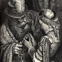 ("logo" : La Barbe bleue confiant le trousseau de clefs à sa jeune épouse. Illustration de Gustave Doré (1867))